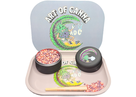 Premium Rolling Tray w/Magnetic Lid - Gray x Grinder w/Magnetic Lid